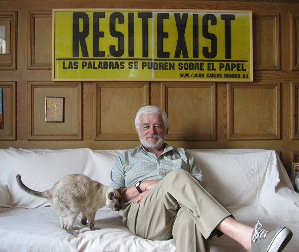 La de Juan Carlos Romero es una vida caleidoscópica. Cuesta creer que una persona haya transitado tantas vidas en una. Romero es integrante del reconocido grupo de Artistas Solidarios pero, por algún motivo, no cuenta con la fama de León Ferrari o de Luis Felipe Noé, sin ser por ello menos apasionado, prolífico e innovador. “Si usted quiere formarse un concepto claro de la existencia, viva”, aconsejó una vez Roberto Arlt, dirigiéndose a un lector. Esa extraordinaria ley del conocimiento aplica para definir a Romero, cuya existencia no se ha restringido en absoluto a un taller. Por el contrario, lo suyo fue más patear la calle, alzar la voz por la injusticia en cuanta fábrica se metía, huirle a galerías y museos para poder llegar a todos, con ideas predominantemente políticas. Romero es, por todo esto, un obrero del arte.