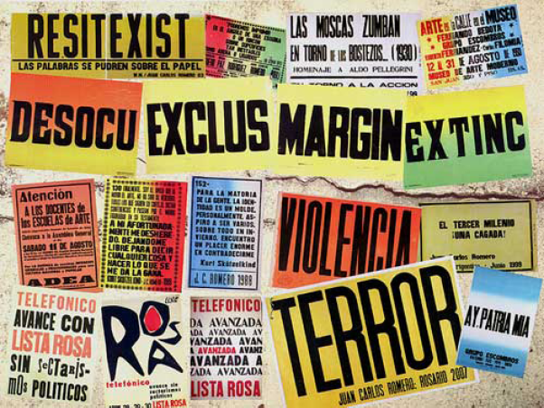 Después de esos primeros trabajos “ingenuos”, la línea “editorial” que atraviesa la obra de Romero es el eco de una realidad político-social. Sobran los ejemplos. Sin ir más lejos, una de sus últimas incursiones en la vía pública fue un afiche —siempre con letras al estilo boliche bailable— que colocó en Chacarita con la leyenda “Todos somos negros”. Y para este lunes, a propósito del Bicentenario, organizó junto con los Artistas Solidarios una movida frente al monumento a Mariano Moreno —ubicado en la plaza homónima de la Ciudad de Buenos Aires—, bajo la consigna “La revolución inconclusa”. “Pensamos que a Moreno lo tiraron al mar y se acabó su revolución. Lo envenenaron, no sé qué le hicieron, pero no llegó a ningún lado. Pedimos a la gente que vaya con cosas: papeles, pancartas, lo que quieran”, invita.