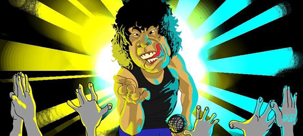 El Dios del Cuarteto dio un recital en José C. Paz. En la caravana hacia Tornado, un cronista de NaN y un bebé en la panza se convirtieron a la fe de su tunga tunga. Ilustración: Nahus (Blogger)