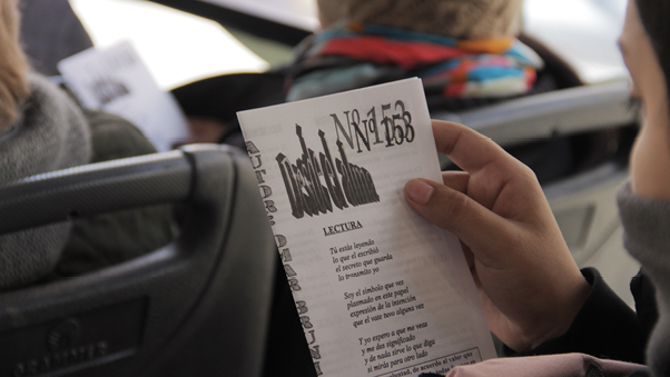 Son las 10. La gente se amontona en las paradas del 15 y el 110. En su mayoría los bondis vienen llenos y así no se puede subir. Los que no paran no son amigos, “no dejan trabajar”. Mientras tanto, Omar Bruni prende un cigarrillo y sigue a la espera. Después de 20 minutos aparece un colectivo con la cantidad de gente justa. Saluda al chofer, se presenta y empieza con su discurso mientras sólo algunos le prestan atención. “Esto es un regalo”, termina. El poeta sale todos los días a vivir de su poesía. Sin duda, es un sobreviviente.