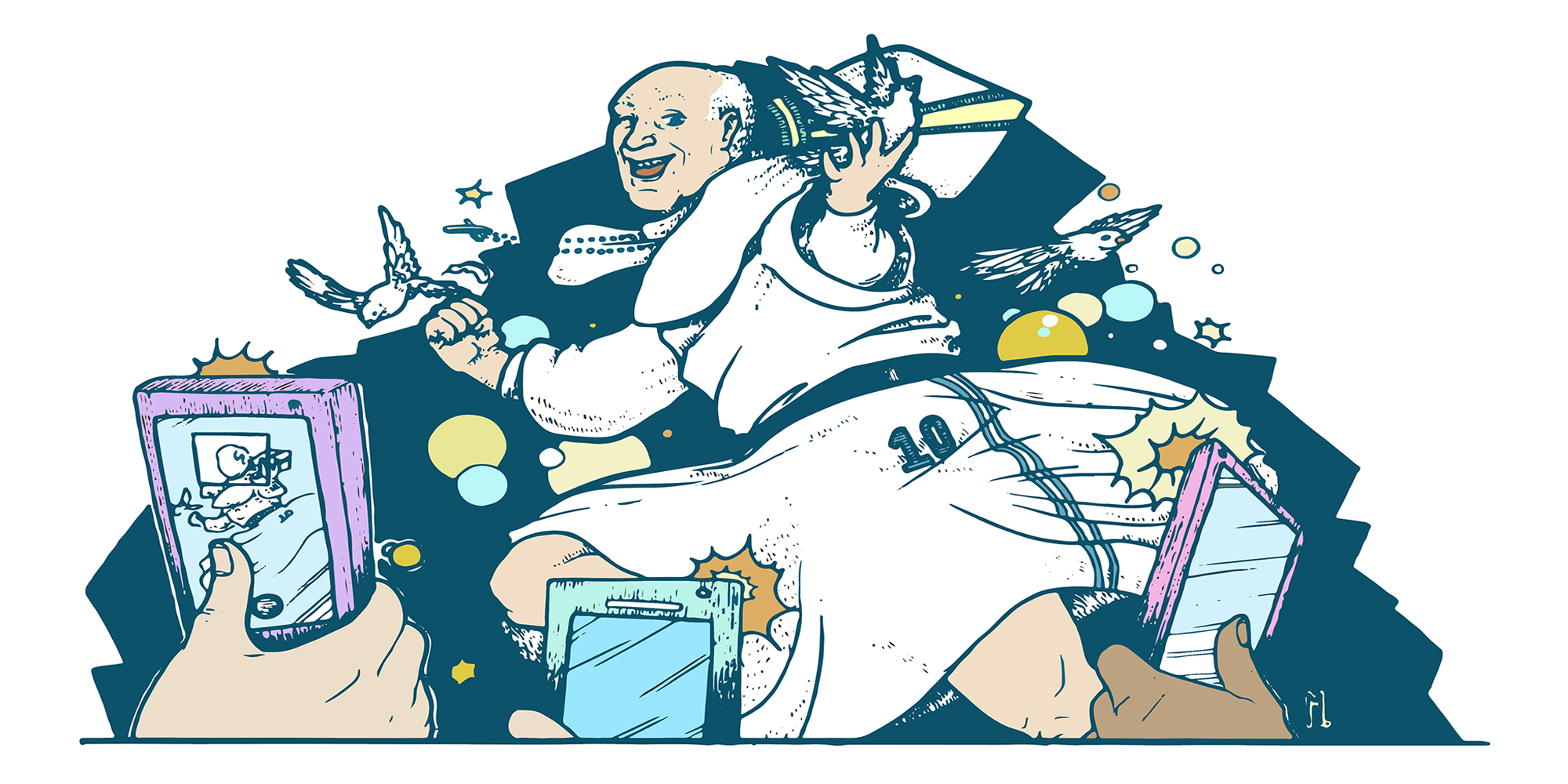 De pronto entra Francisco. Vuelan bebés. Bergoglio ataja, besa, sostiene. Y yo estoy aquí, más que borracha y loca, seducida y abandonada. Seducida por su halo de rockstar, mi ADN maradoniano, un patriotismo rebuscado y un excite loco por una iglesia para los pobres. Abandonada por mi ateísmo, mi marxismo, mis contradicciones, mi fe en el reiki, las cábalas y la política.