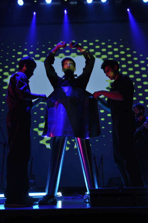 Con Ludotecnia —un hipnótico viaje audiovisual que involucró sonidos electrónicos, proyecciones, juguetes, calaveras y colores que mutaban según el ritmo— se dio por comenzada una ecléctica y multidisciplinaria jornada. Crowe y Mosquera, en conjunto, con circuitos electrónicos que exudaban psicodelia y sinestesia, mantuvieron atentos a todos quienes llenaban las butacas de la sala (incluido Diego Capusotto, fanático del trío), dejándose llevar sin más por un hecho real y ficticio que jugueteó rabiosamente con los sentidos. Luego de veinte minutos de esa experiencia multisensorial, que fue aplaudida intensamente, y de un pequeño break para calmar la psiquis, distender y fumarse un pucho en la vereda, a las 22.05 se proyectó el video dirigido por Iván Wolovik, en el que se retrata la experiencia de Gómez al entregar a domicilio las 70 entradas anticipadas para el concierto, muestra de una cercanía que se entendería firmemente a lo largo del show.
